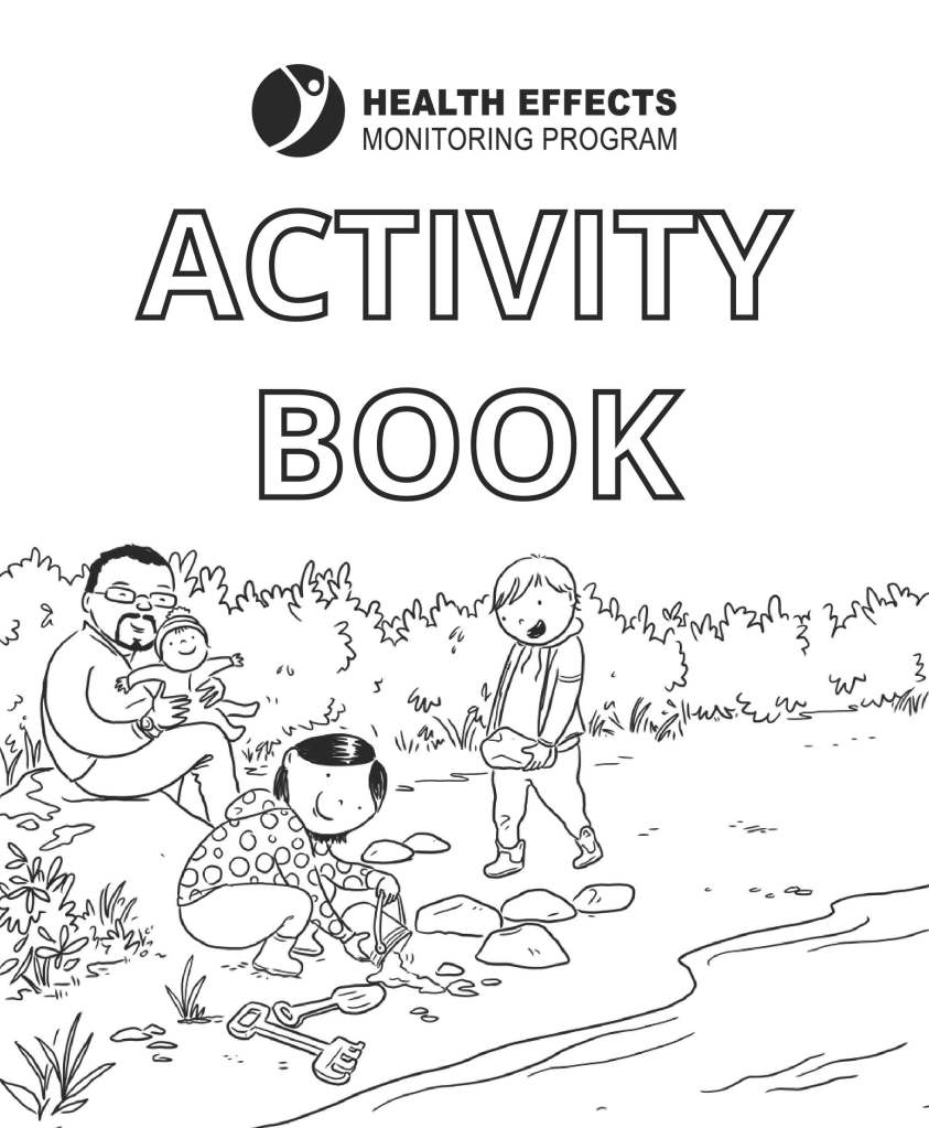 Description: 20-page activity and colouring book, designed to introduce child and youth participants to the Health Effects Monitoring Program.