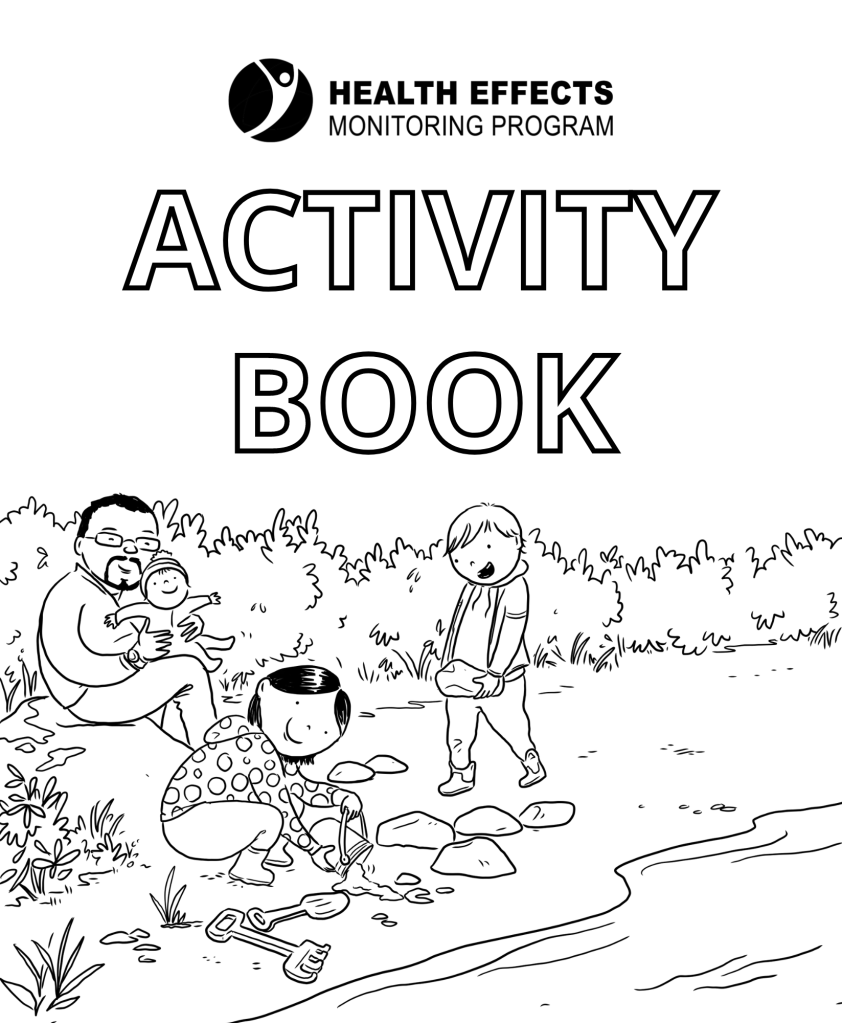 Description: 20-page activity and colouring book, designed to introduce child and youth participants to the Health Effects Monitoring Program.